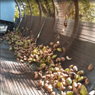El proceso de la Jaula de Ardilla arranca con la recepción de la nuez proveniente del campo (ya sea que esta se vacié en la fosa prefabricada o sea colocada en la tolva receptora del equipo),la nuez y el ruezno son elevados para pasar por un soplador que nos ayuda a eliminar varas, pequeñas y objetos distintos a los del proceso, pasando después por el ardillon para ser masajeado y eliminar el ruezno. Con una capacidad aproximada de 1.2 tons brutas por hora.